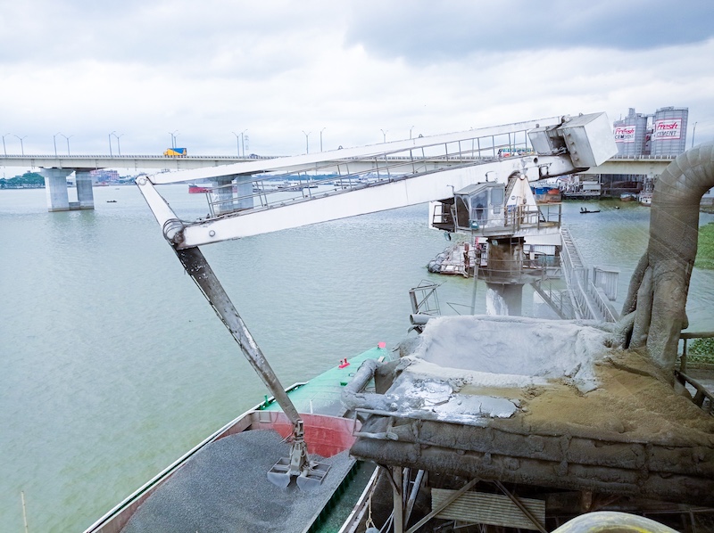 The installation marked a turning point in Bangladesh’s bulk material handling landscape, replacing high-maintenance rope cranes with more efficient hydraulic technology. This first unit proved the viability of the equilibrium principle, where a moving counterweight maintains near-perfect balance, significantly reducing energy consumption and mechanical wear.