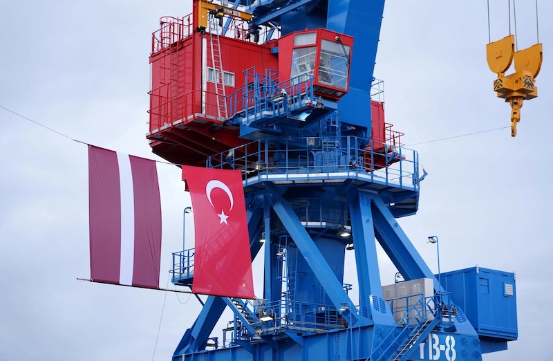 At the Riga Port, AS “RIKON” – the only manufacturer of portal cranes in the Baltic States – has presented unique Double Jib Level Luffing Cranes. They were built for a customer from Turkey and will soon be shipped to the port of Isdemir on the Mediterranean Sea, thereby opening a new export niche for Latvia in Turkey.