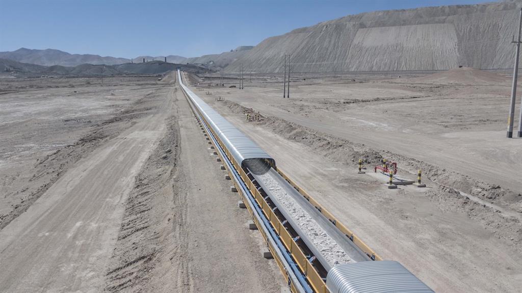 First ore on the TAKRAF gearless-drive overland conveyor at Chuquicamata, Chile.