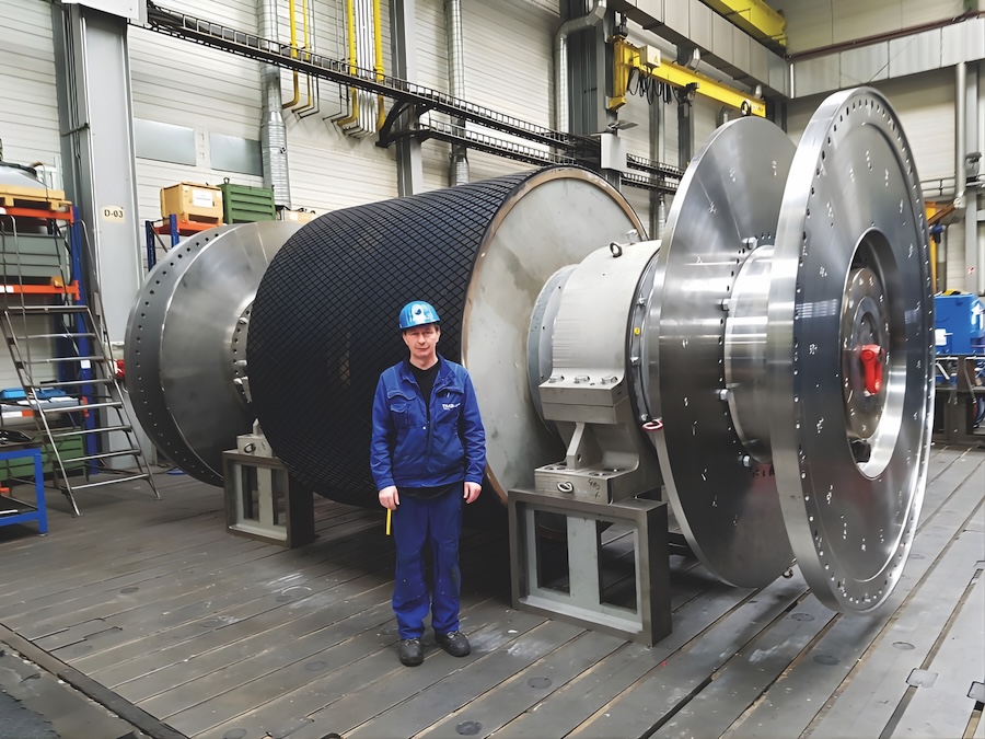 Drive pulley for the Chuquicamata project in the workshop at the TAKRAF Product & Service Center in Lauchhammer, Germany.