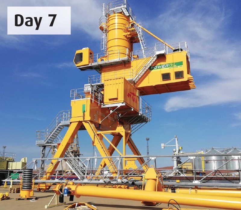 Like any other VIGAN equipment, the pneumatic ship unloader in Rostock was erected successfully and in short time by VIGAN’s highly qualified team: ten days from the storage and preparation (day 1) to the erection of the loading chutes (day 10).