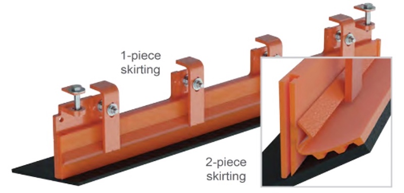 The choice of one- or two-piece ApronSeal™ Urethane Skirting depends on the available space along the belt edge.