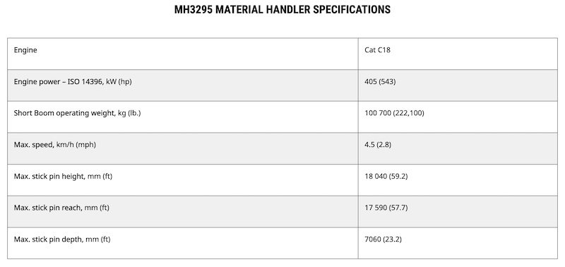 Plus, standard technologies like Swing Assist, Cat Payload and 2D E-fence help operators to work more efficiently and safely. The new design of the MH3295 is about elevating jobsite performance and delivering long-lasting durability and value.